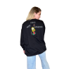 Juodos spalvos ilgesnis unisex džemperis su unikaliais akcentais. Priekyje "Still not famous" spauda, nugaroje siuvinėtas mylimas animacinis personažas Kliunkis, papildytas užrašu „Still not famous“.