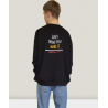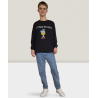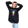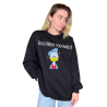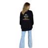 Черный длинный свитер с уникальными акцентами. Спереди вышито стильное изображение Дональда и надпись «Life's What You Make It». Надпись спереди и сзади. На фото первая перемычка спереди, вторая сзади.